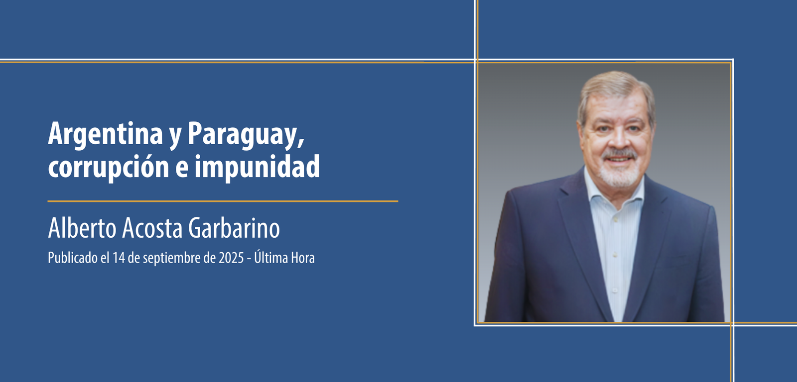 Nota Técnica1 La economía paraguaya tuvo un fuerte crecimiento en los últimos años. Esto sugiere que el país tendría una mayor capacidad de crecer de manera sostenida. Este documento busca… Hace doce días nuestro país vivió un “miércoles negro” debido al apagón eléctrico que afectó a gran parte del territorio nacional. Las consecuencias y los costos del “apagón” son incalculables:… Luego de una aprobación acelerada en Diputados, el Senado le puso un frenazo al tratamiento del proyecto de ley de reforma de la Caja Fiscal presentado por el Poder Ejecutivo…. En el complejo y conflictivo mundo actual, el análisis geopolítico debe ocupar un lugar preponderante en la definición de la política exterior de un país. La ubicación geográfica, el tamaño… En los últimos meses venimos observando comportamientos atípicos en los mercados financieros internacionales. El yen japonés se ha depreciado de manera sustancial en los últimos años ubicándose alrededor de los… La semana pasada diversos sectores empresariales y de la sociedad civil se manifestaron a favor de una urgente reforma del sistema jubilatorio de los empleados públicos –llamado Caja Fiscal– que… El Ministerio de Economía y Finanzas (MEF) divulgó días atrás las cifras fiscales del año 2025. Lo más resaltante es que el déficit cerró en USD 1.047 millones, 2.0% del… El Poder Ejecutivo presentó al Congreso Nacional el proyecto de ley que establece Medidas de Reforma para la Caja Fiscal. Esta es una de las reformas fundamentales para fortalecer la… La reciente intervención militar de los Estados Unidos en Venezuela ha marcado un cambio dramático en las relaciones de la superpotencia con América Latina y ha avivado en su interior… El año 2025 se ha ido con muchos resultados económicos muy positivos, pero con preocupaciones y dilemas, cuyo tratamiento no podemos seguir postergando. Cerramos el año pasado con un crecimiento… Los agentes económicos empiezan el año nuevo con una gran preocupación e incertidumbre: La cotización del dólar ha caído casi un 20% desde junio y parece no tener piso. Esta… La obtención del grado de inversión por parte de Paraguay es un logro histórico que merece ser celebrado plenamente. No es un premio simbólico ni un gesto de cortesía de… El jueves participé de un conversatorio organizado por la Cámara Paraguaya de la Construcción, cuyos asociados están muy afectados por el atraso en los pagos por obras ya realizadas que,… La semana pasada hemos escuchado numerosos discursos evaluando el año 2025 que se está yendo. Por un lado, el presidente y algunos ministros hicieron un repaso histórico de todo lo… La economía paraguaya está cerrando el año 2025 con un importante crecimiento a pesar de la alta incertidumbre generada en la economía mundial a partir del brusco cambio en la… Cuando un nuevo Gobierno asume el poder, este llega con una mochila llena de promesas, con poco dinero y con poco tiempo para satisfacerlas, antes de que vuelvan los tiempos… En los últimos meses ha venido creciendo la intensidad del reclamo de proveedores del Estado de distintos sectores sobre importantes atrasos en los pagos por los bienes y servicios entregados… La semana pasada el presidente Milei fue el conferencista principal en una cena de gala realizada en el corazón mismo del movimiento conservador de los Estados Unidos. La cena se… La segunda parte del Plan de Crecimiento Económico, preparado por la consultora internacional McKinsey al Ministerio de Industria y Comercio (MIC), se enfoca en el desarrollo de nuevas industrias en… La semana pasada estuvo de visita en nuestro país el ex presidente de Chile, Eduardo Frei, quien gobernó en los años 1994 y 2000, periodo considerado en su país como… El segundo semestre del año empezó con una sorpresiva caída en la cotización del dólar en nuestro país. De casi G. 8.000 en los últimos días de junio, bajó a… La semana pasada estuve en Buenos Aires y volví impresionado por el gran deterioro que tuvo la popularidad de Javier Milei en los últimos meses, la cual –según diversas encuestas–… En los últimos años se han presentado varios análisis y proyecciones sobre el consumo de energía eléctrica y su correspondiente abastecimiento con la capacidad instalada disponible. Todos coinciden en que,… El martes de la semana pasada se dio inicio a la Asamblea General de las Naciones Unidas, un espacio que desde hace 80 años reúne a los principales líderes mundiales… El Ministerio de Economía y Finanzas (MEF) presentó el Proyecto de Presupuesto General de la Nación (PGN) al Congreso el 25 de agosto pasado. Este Presupuesto es muy importante porque,… En los últimos días la filtración de dos audios –en Argentina y en Paraguay– dejaron al desnudo, otra vez, la terrible corrupción existente en casi todos los gobiernos de nuestra… Semanas atrás, el INE divulgó datos de la encuesta de hogares que indican que el empleo continuó creciendo a un ritmo importante. Una buena noticia. Sin embargo, divulgó otros que… En los últimos 20 años la exportación de carne vacuna se ha constituido en uno de los motores del crecimiento económico de nuestro país. De una exportación de apenas unos… Los datos sobre la marcha de la economía paraguaya, recientemente publicados por el Banco Central del Paraguay (BCP), indican que la economía continúa en una fase expansiva a un ritmo… El cierre inmediato y total de una cadena de 263 minimercados, tras una rápida inspección de unos pocos locales, va mucho más allá de un problema empresarial: Golpea la imagen…Una mirada simple al crecimiento potencial
